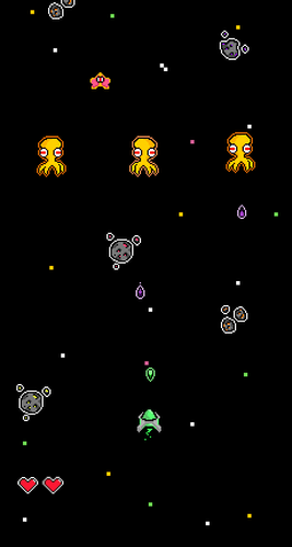 Embarque em uma aventura intensa pelo espaço, enfrentando alienígenas de cores variadas e perigosos meteoros que testam seus reflexos e sua estratégia. Colete energia, evite ameaças rápidas e prepare-se para confrontos épicos, incluindo um misterioso polvo gigante que domina a galáxia. Uma experiência desafiadora e emocionante espera por você!